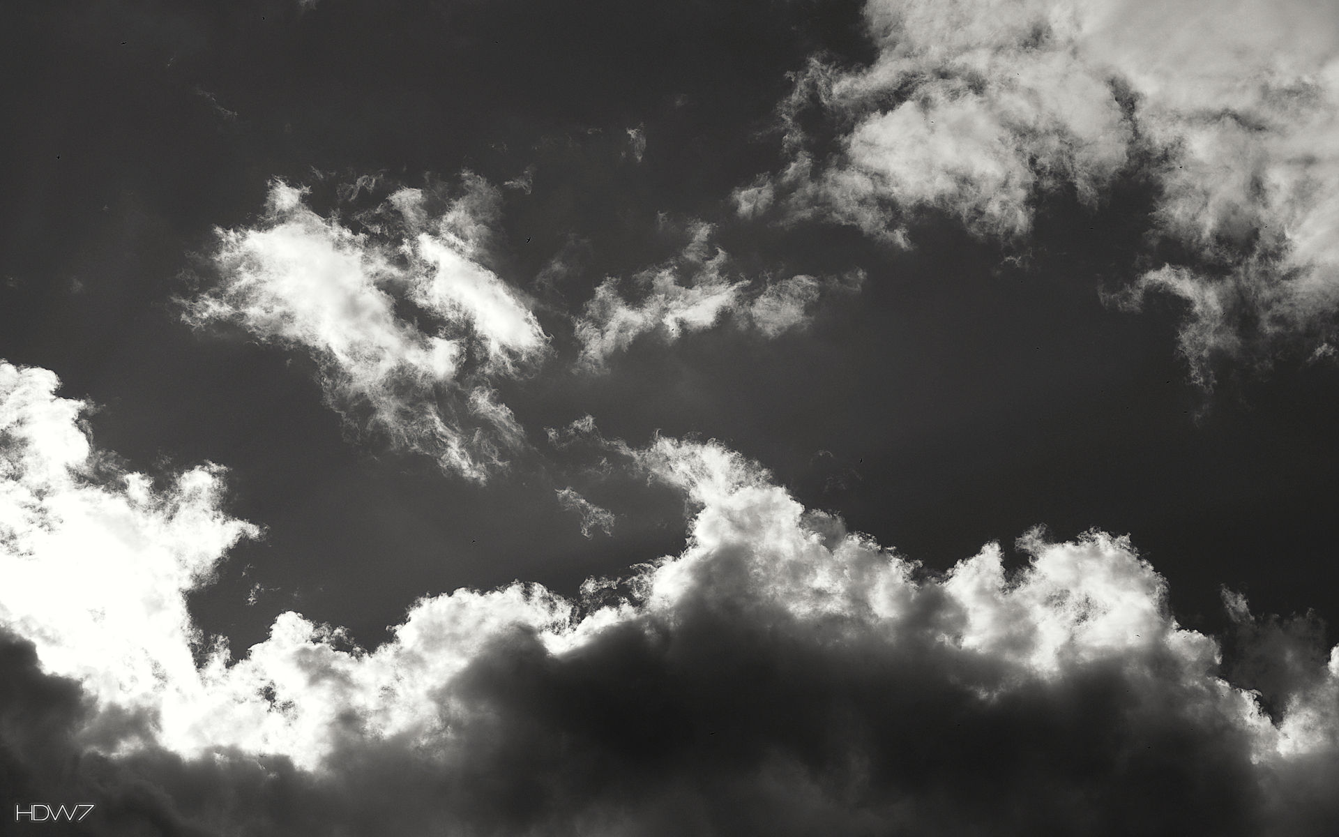 Description: A plane flying through a cloudy sky with a jet in the distance and a few clouds in the background.