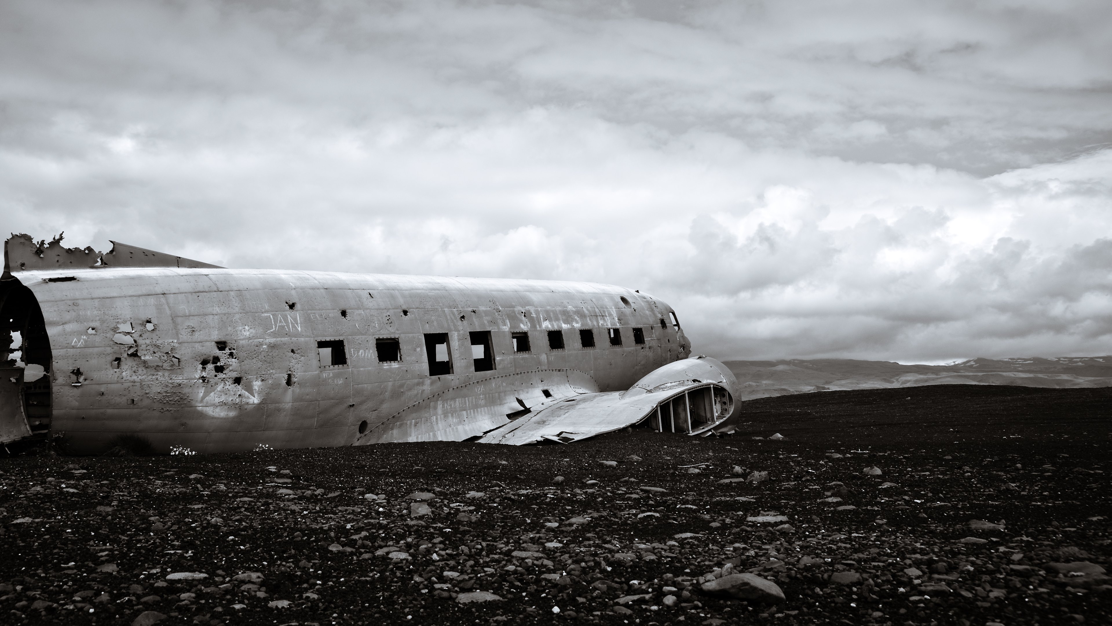 Description: A plane that is sitting on the ground in the dirt and rocks.