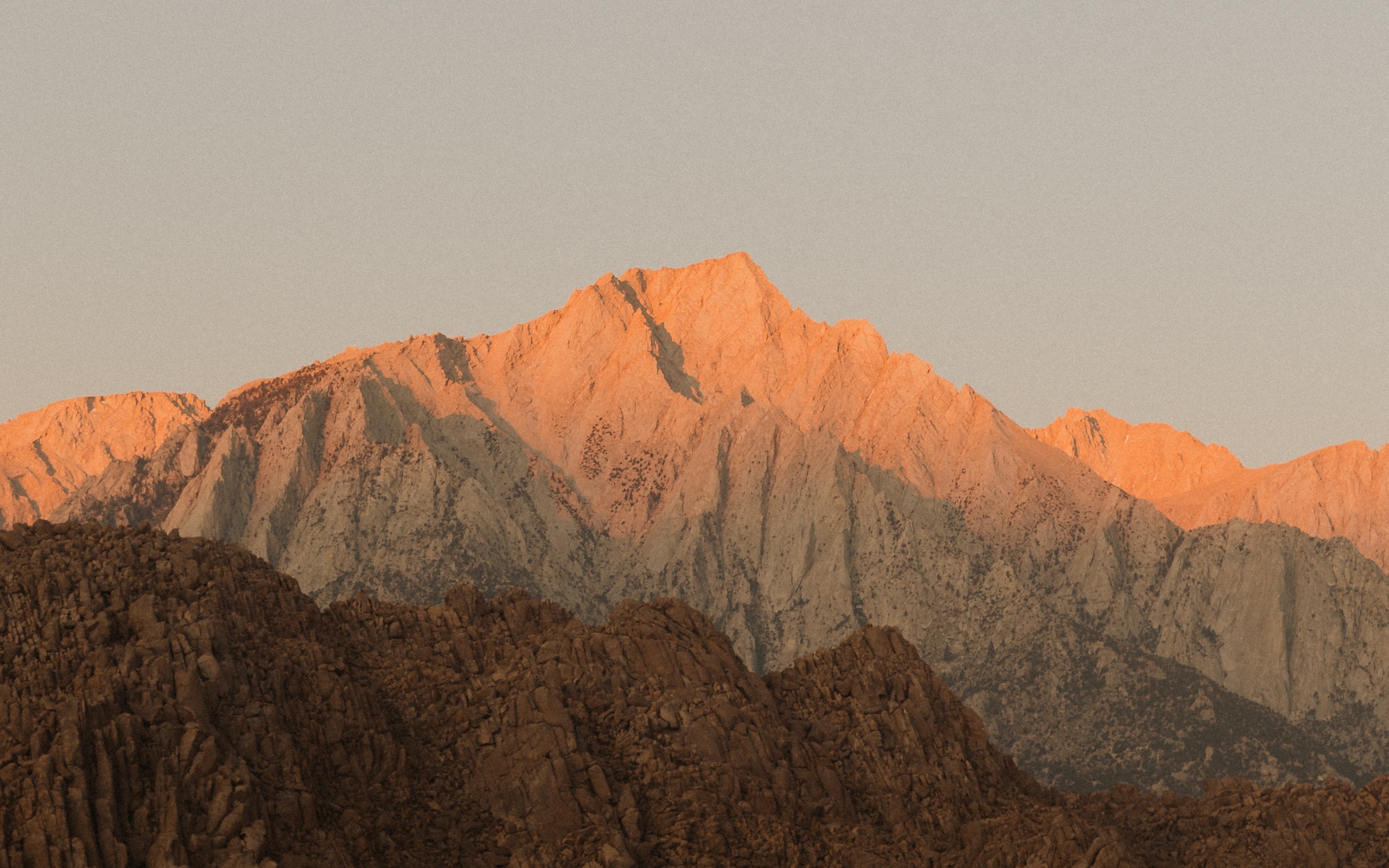 Description: A plane flying over a mountain range at sunset or dawn with a plane in the foreground and a plane in the foreground.