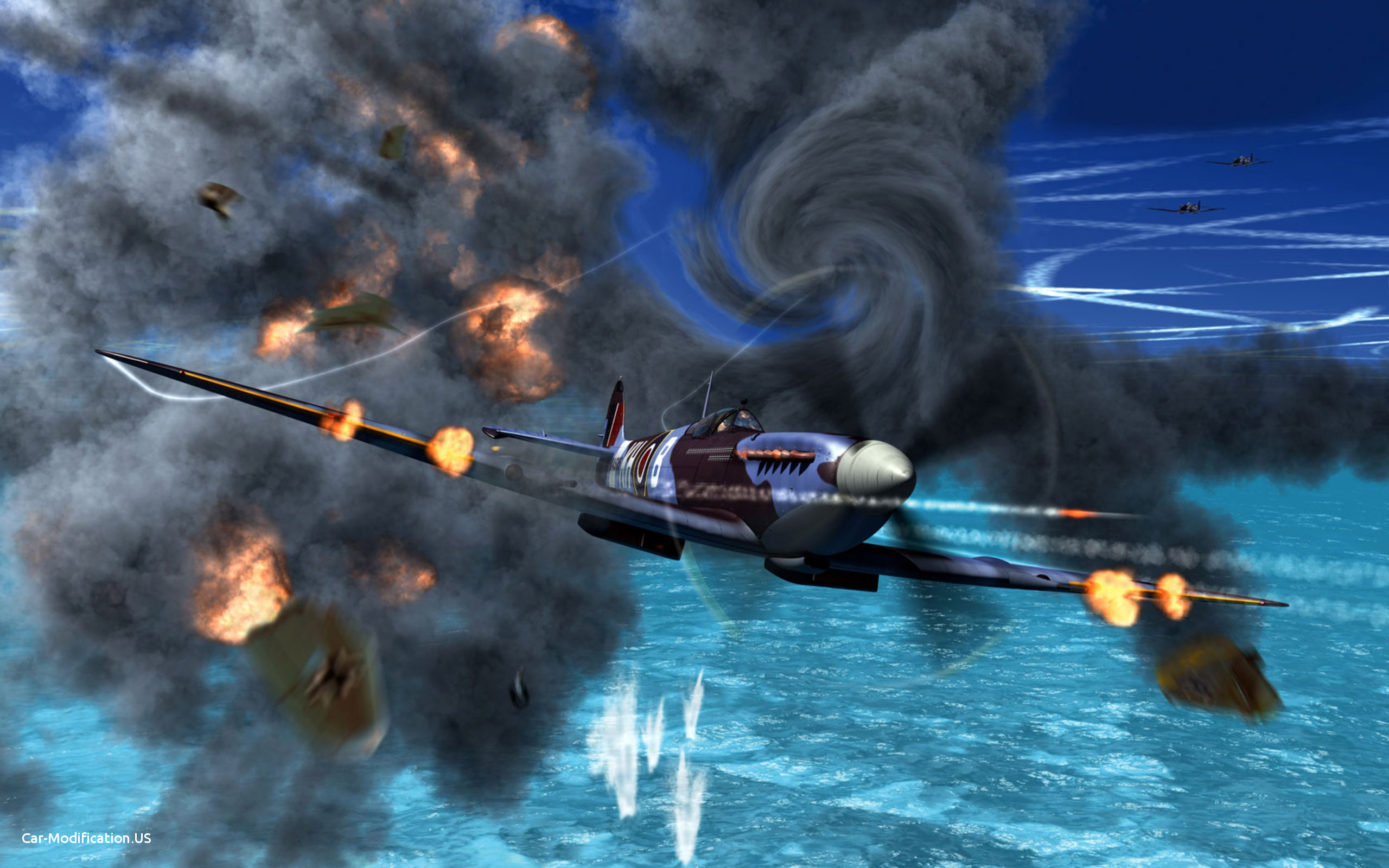 Description: A plane is flying through the air with a lot of smoke coming out of it's wings and a lot of smoke coming out of its back.