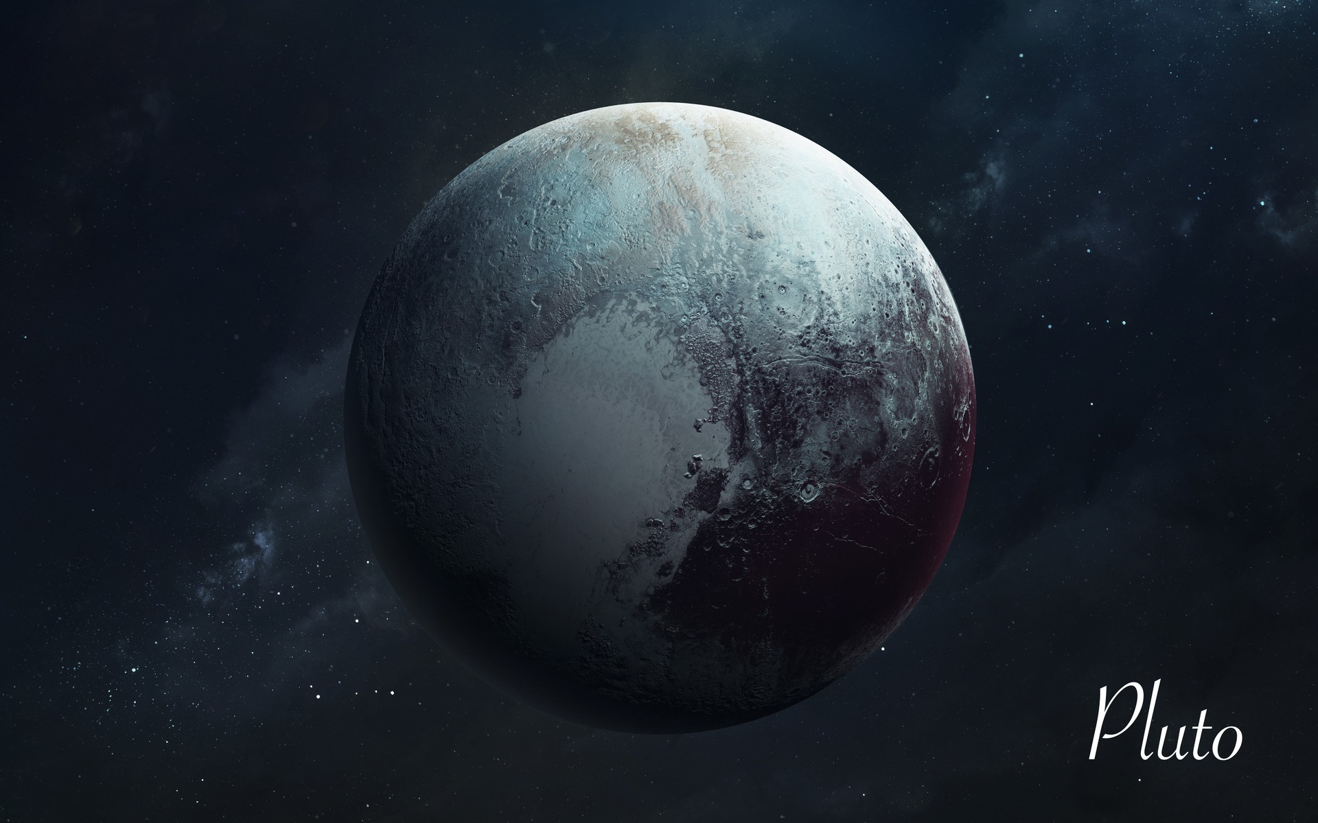 Description: A planet with a red and white substance on it's surface in the sky with stars around it.
