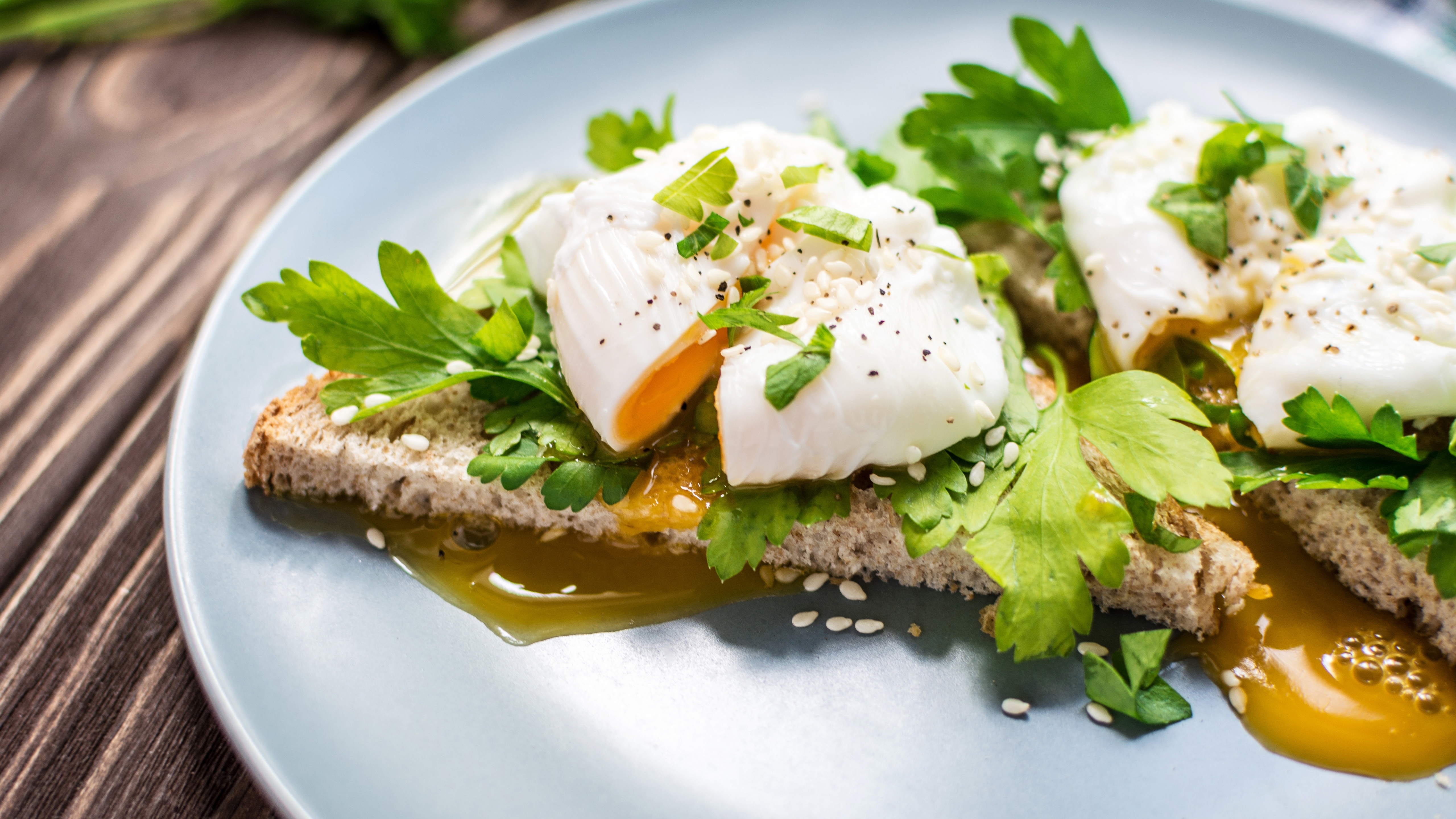 Description: A plate of food with bread and sauce on it on a table with a napkin and a fork next to it.