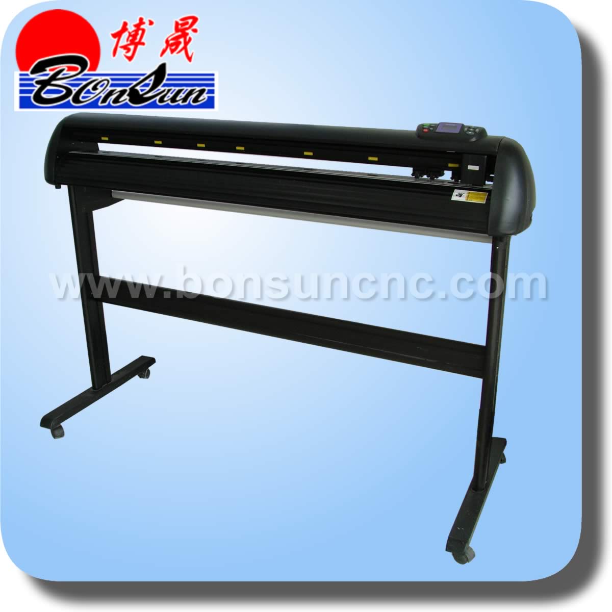 Description: A large ploter with a blue background and a blue sky in the background with a red sun logo.