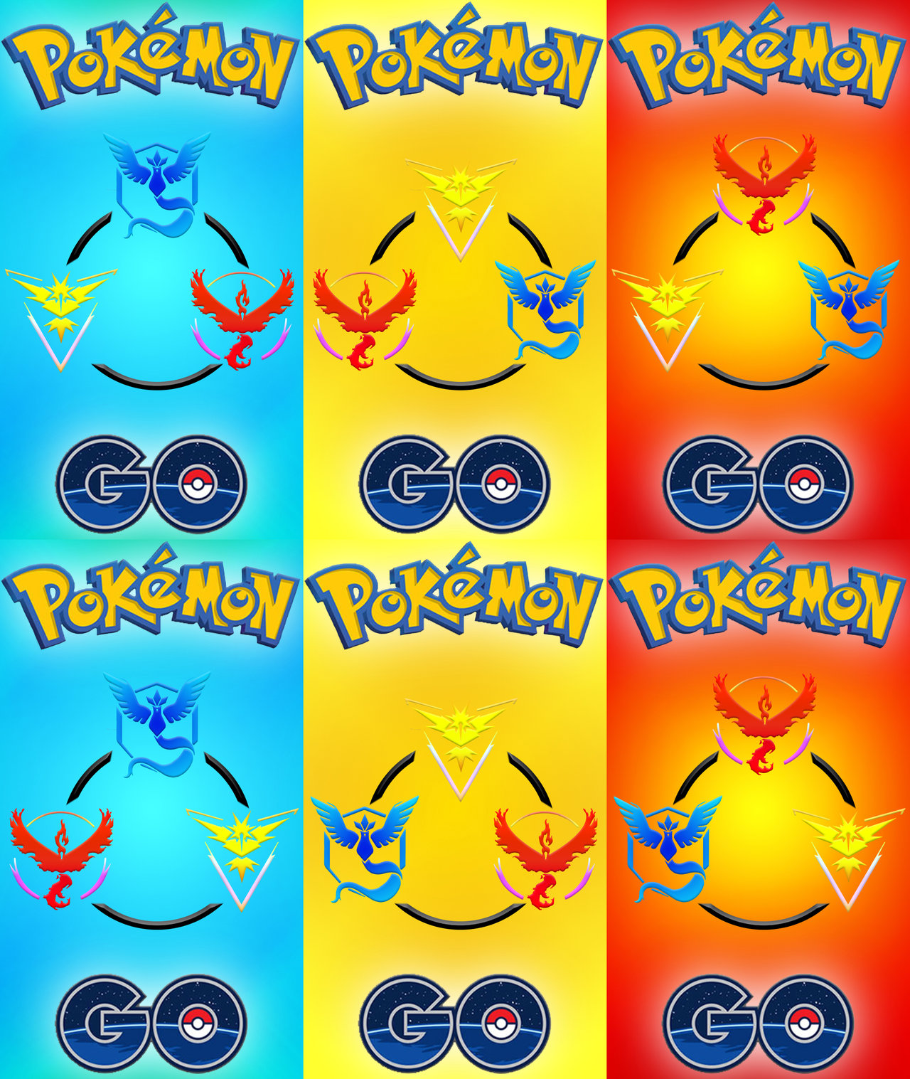 Description: A pokemon poster with different colors and symbols on it's sides.