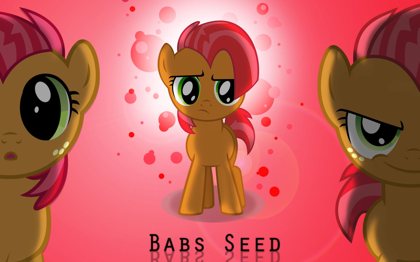Description: A cartoon picture of a pony with a pink background and a red background with a pink background and a brown pony with a red tail.