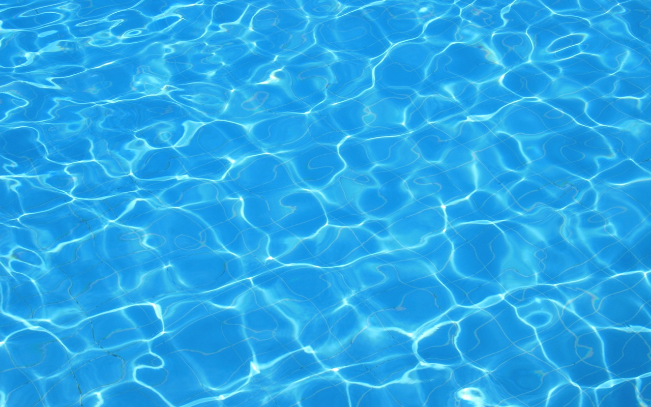 Description: A pool with blue water and a white umbrella in it's center of the pool is a blue sky.