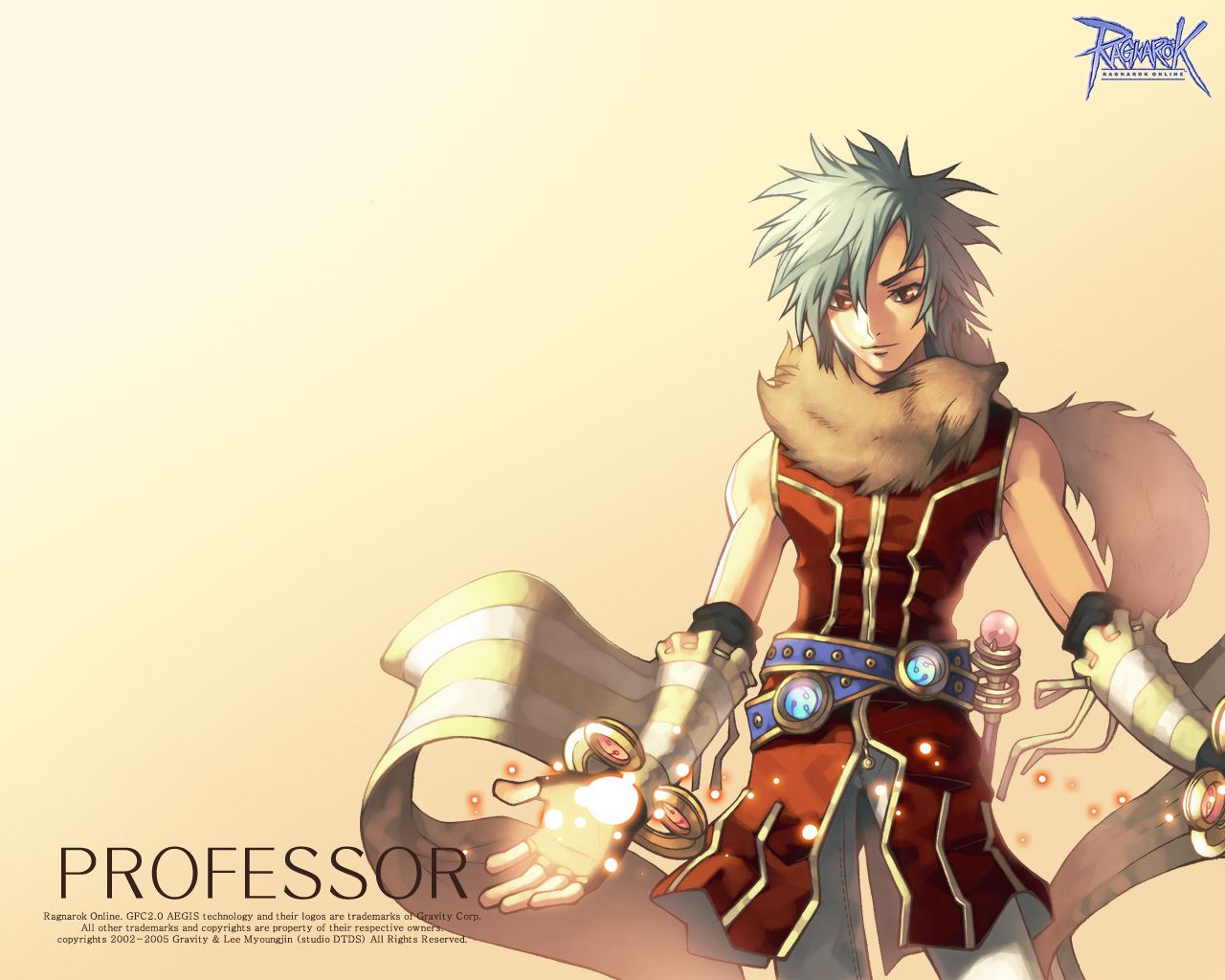 Description: A man with a sword and a costume on holding a sword and a banner in his hand with the word professor written on it.