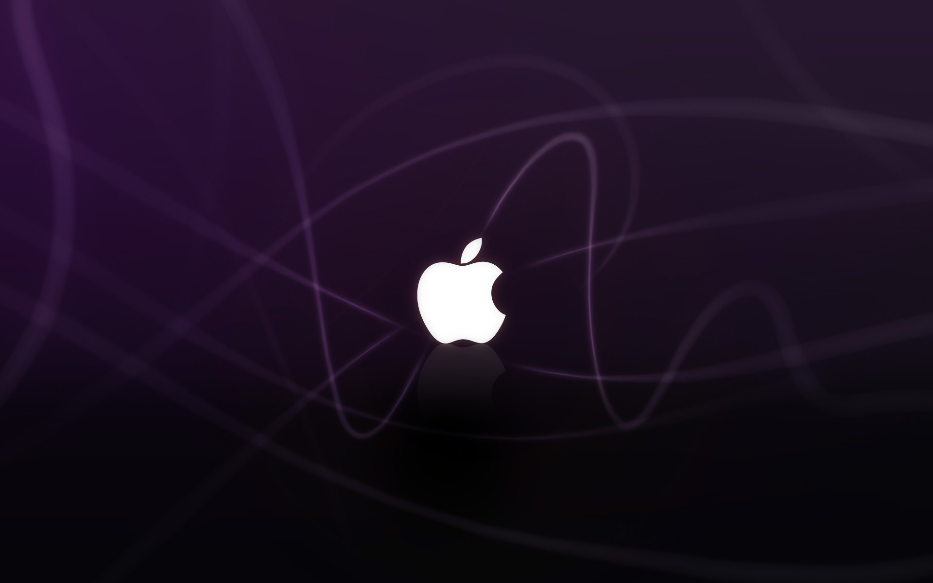 Description: A purple apple wallpaper with a black background and a white apple logo on it's side and a purple background.