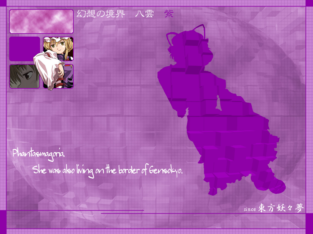Description: A purple background with a picture of a woman and a man in the middle of it with a caption.