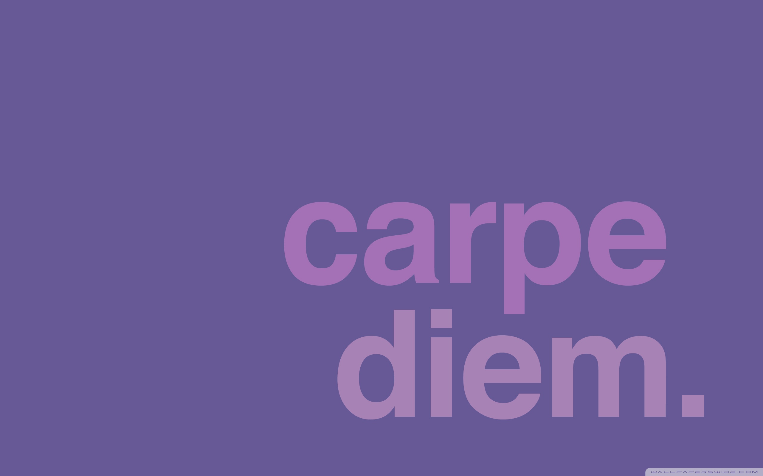Description: A purple background with a pink and purple type of text that reads carpe diem on it.
