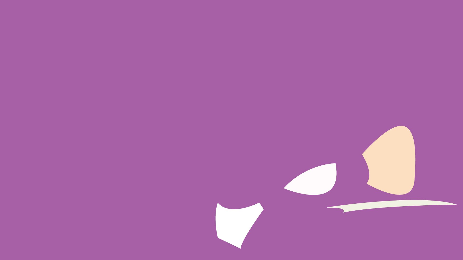 Description: A purple background with a white cat's head and a yellow nose on it's left side.