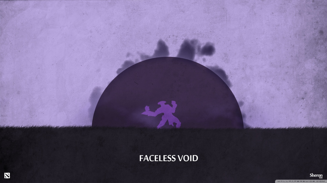 Description: A purple and black picture of a person holding a frisbee in front of a purple background with the word faceless void.