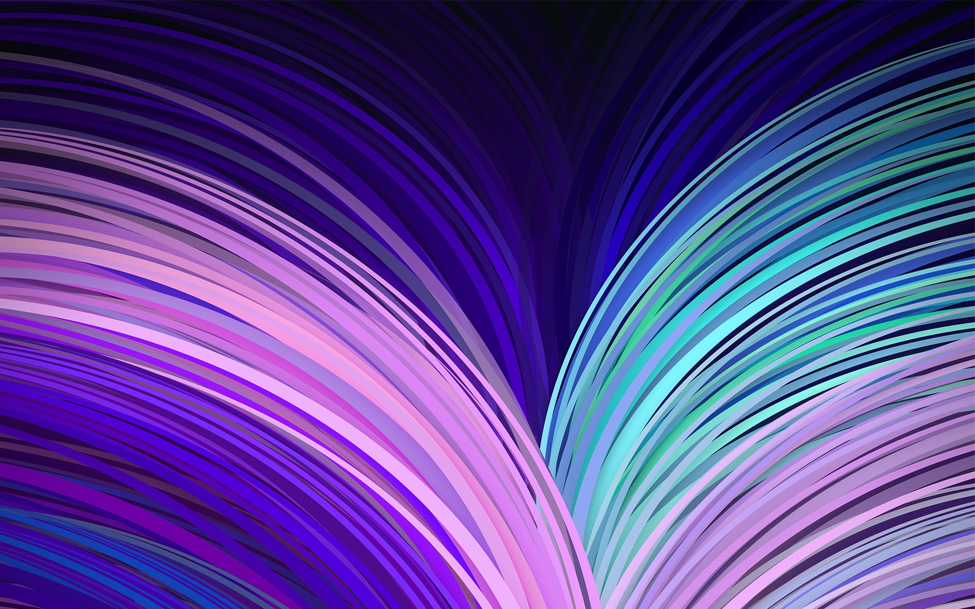 Description: A purple and blue abstract background with lines of varying colors and shapes in the center of the image.