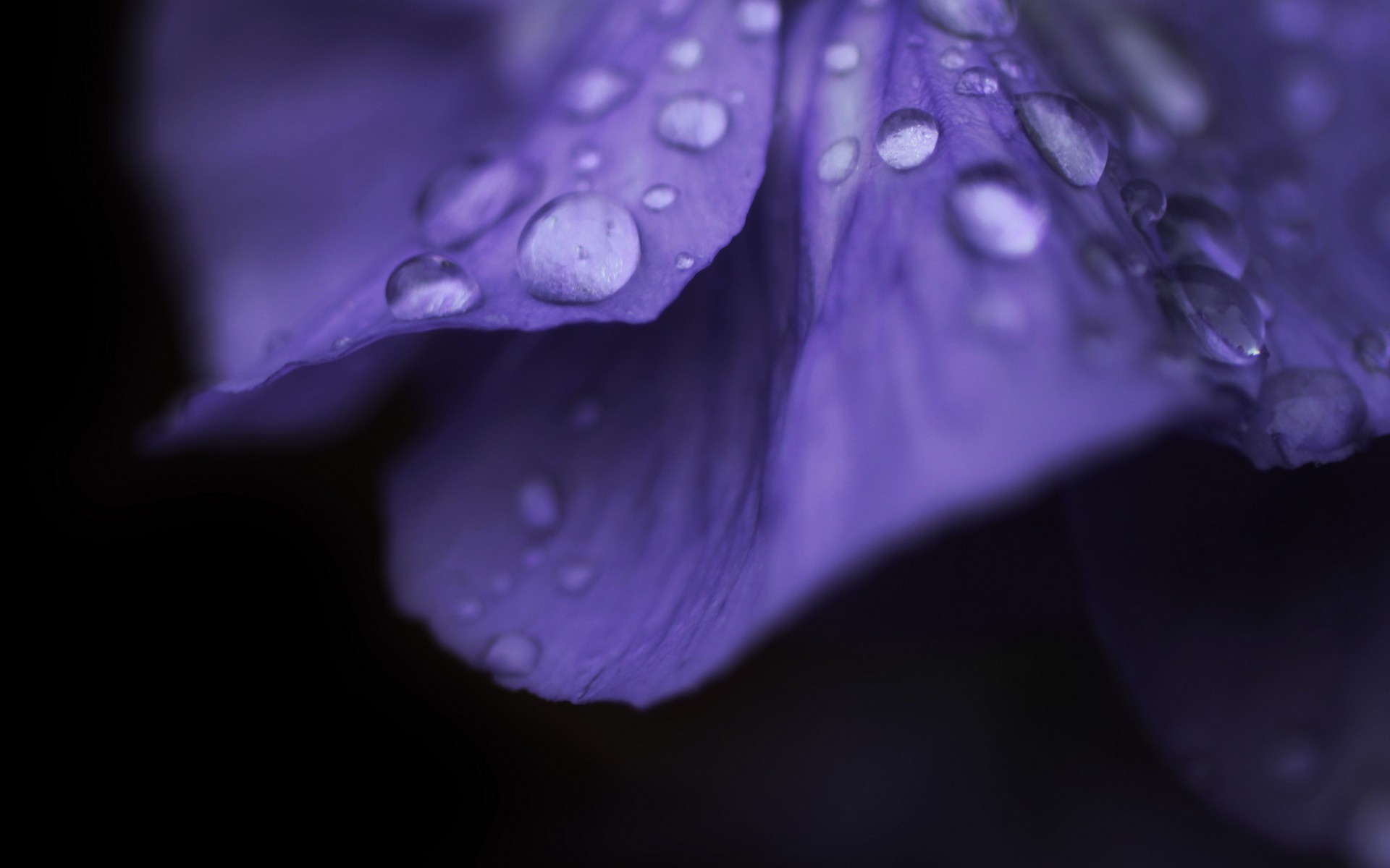 Description: A purple flower with water droplets on it's petals and a black background with a black background and a black background with a white border.