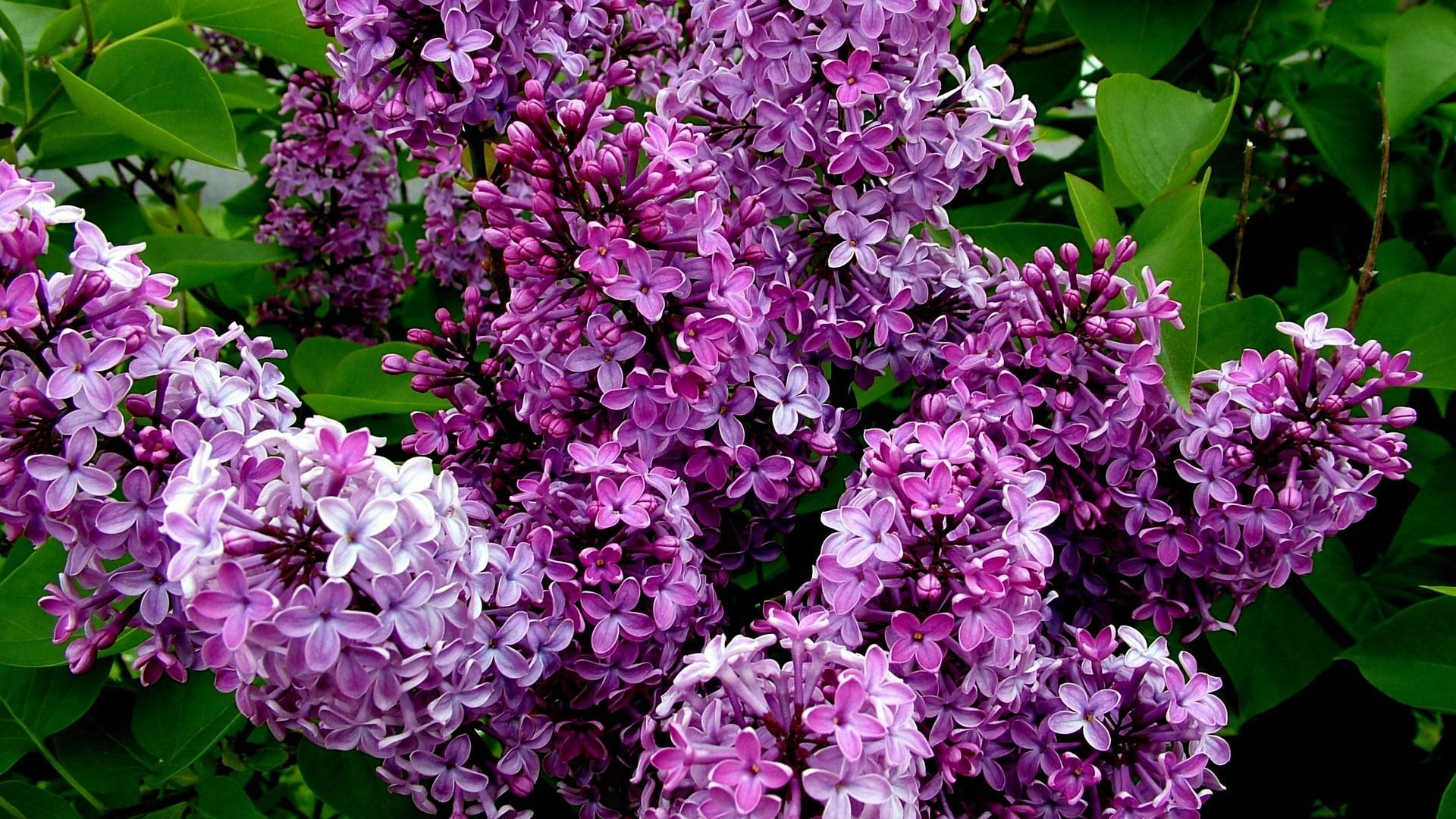 Description: A bunch of purple flowers that are in the grass and some leaves on the ground and one is blooming.