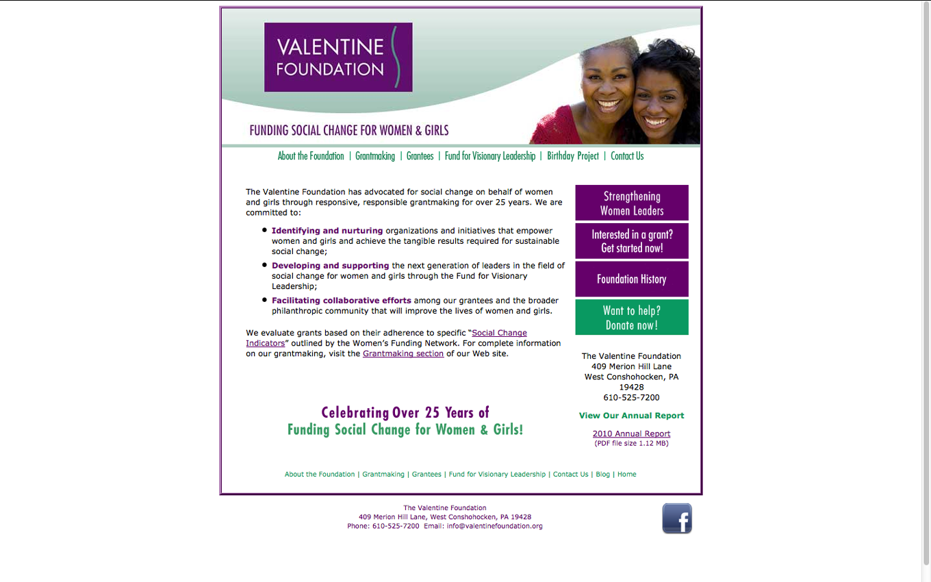 Description: A purple and green website design for a charity event with a picture of two women smiling and looking at the camera.