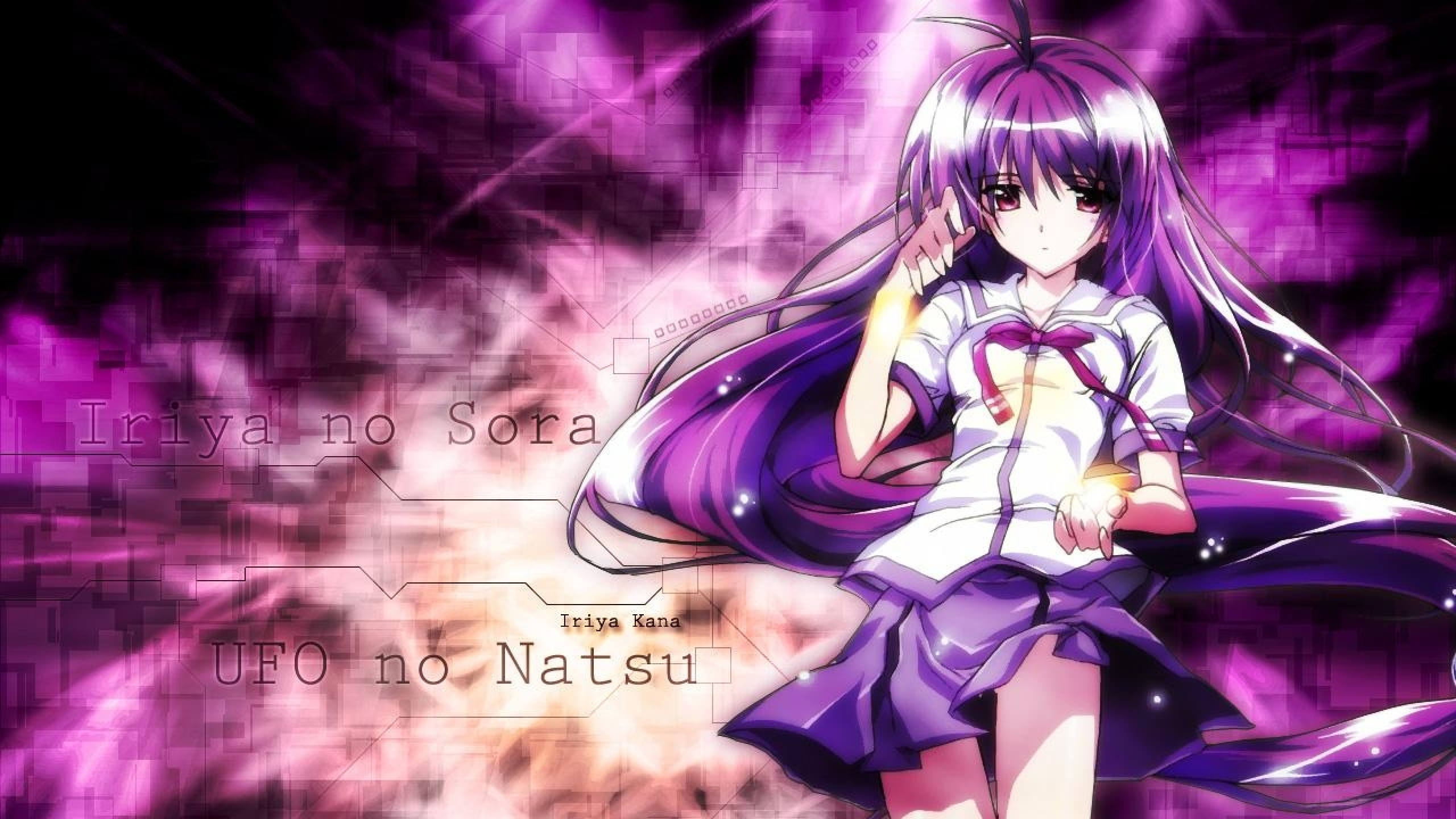 Description: A girl with long purple hair and a purple dress is standing in front of a purple background with a purple light.