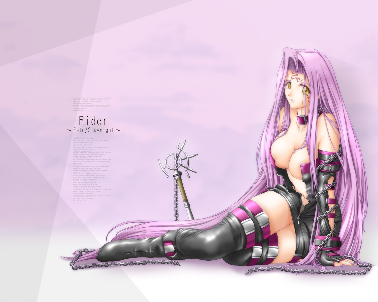 Description: A cartoon picture of a woman with long purple hair and boots sitting on the floor with a key in her hand.