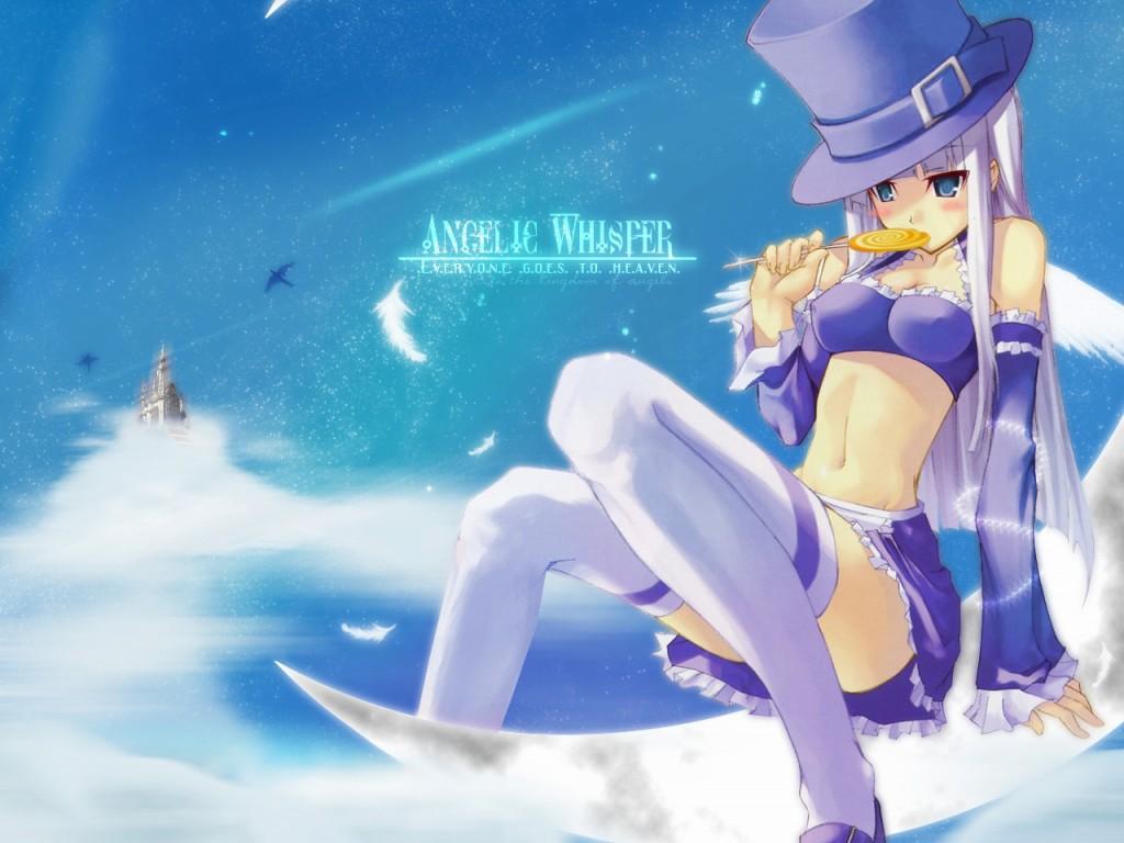 Description: A woman in a purple outfit and hat sitting on a moon with a bird flying above her and a lighthouse in the background.