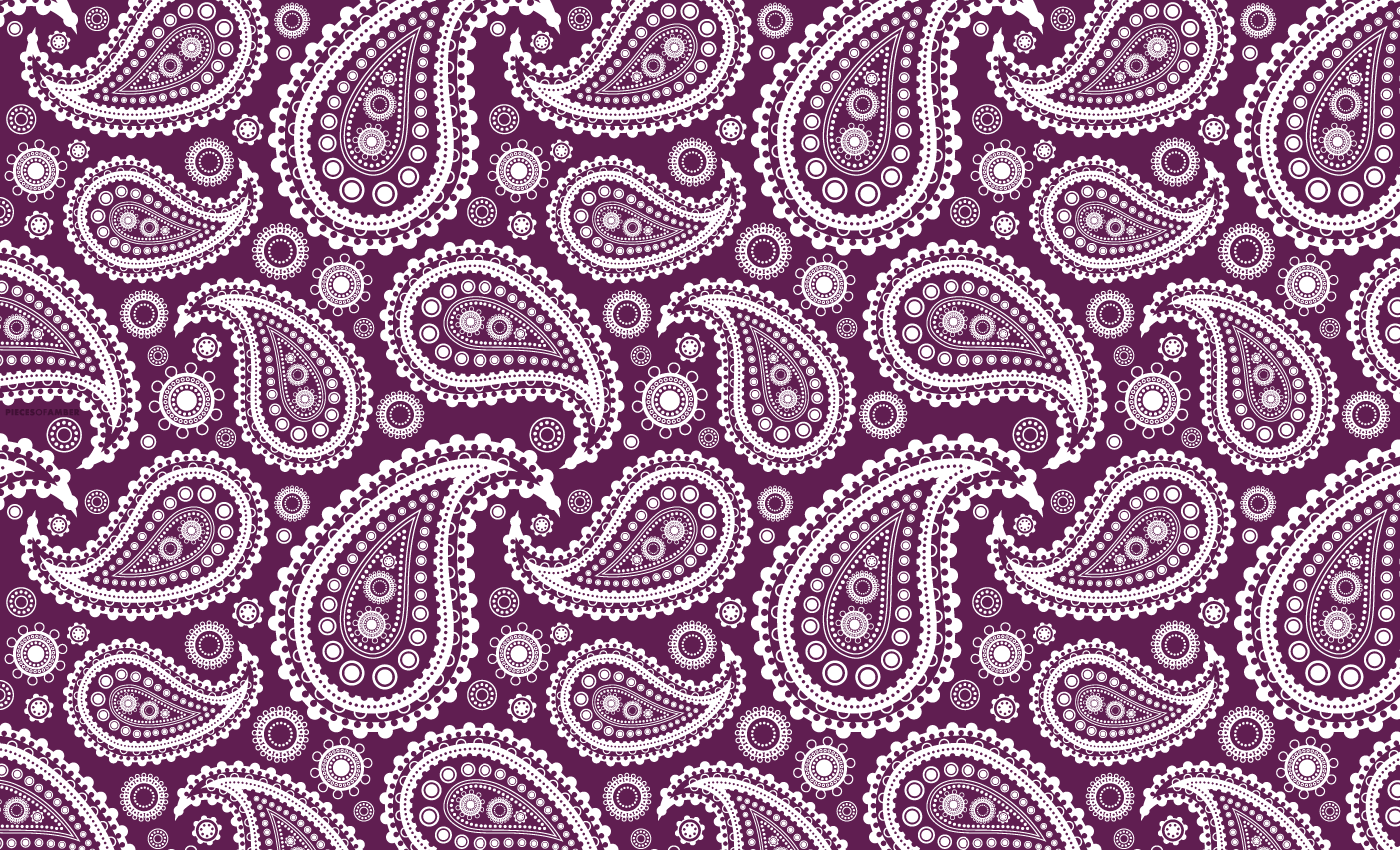Description: A purple paisley pattern with white dots on it's edges and a white paisley on the side of the image.