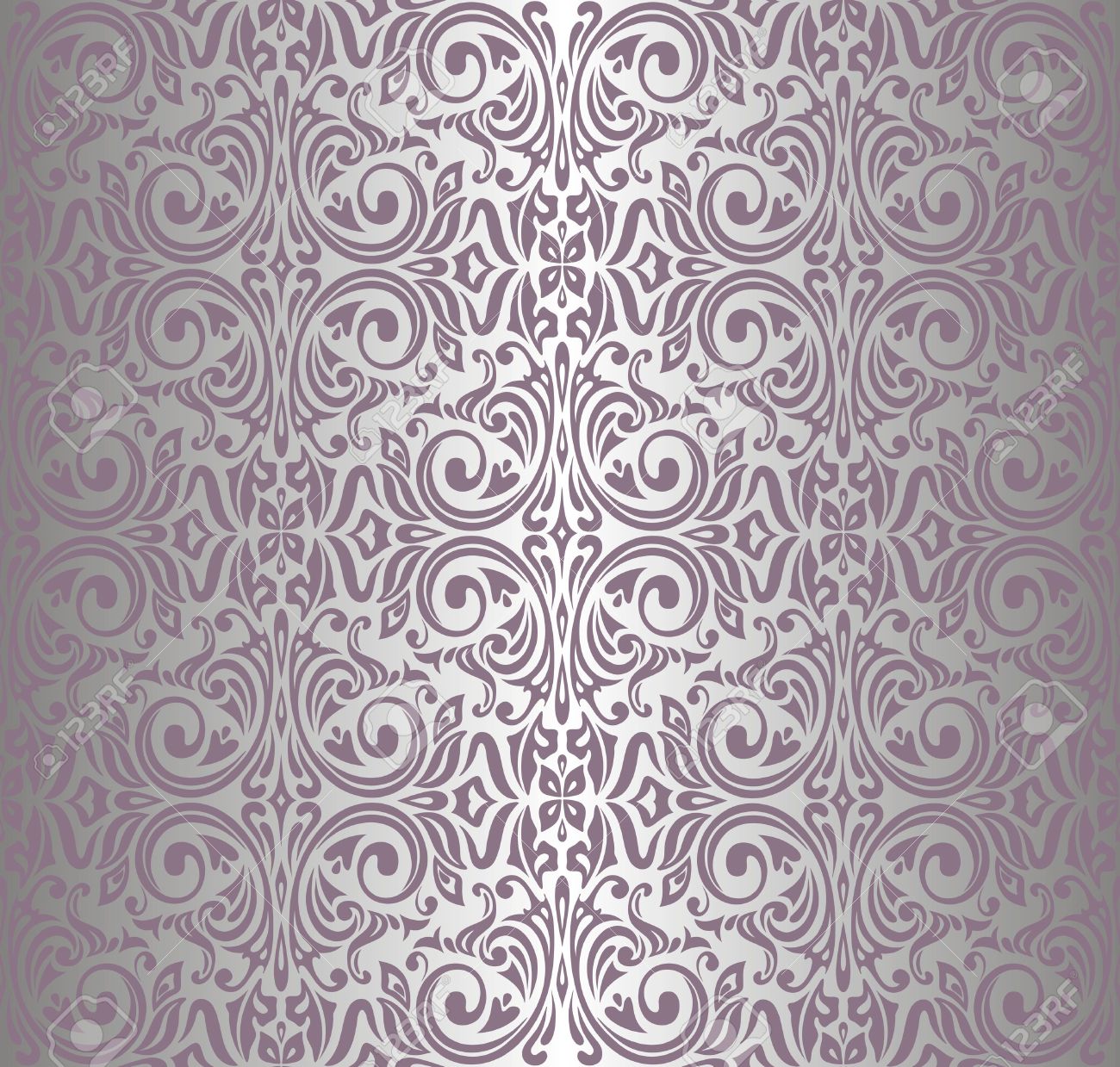 Description: A purple and silver wallpaper with a floral design on it stock photo - 557799.