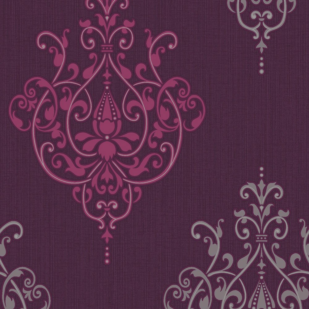 Description: A purple and silver wallpaper with a pattern on it's side and a pink and white design on the back.