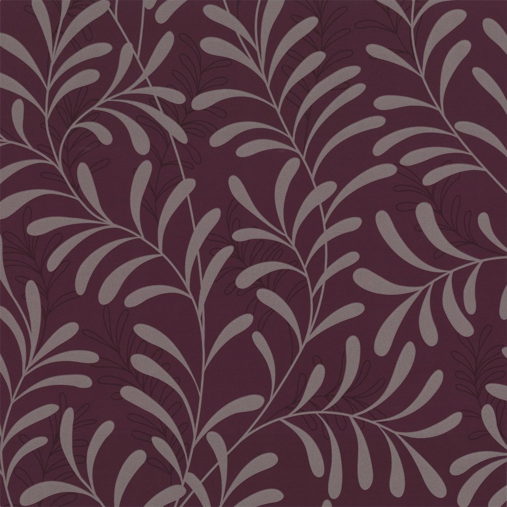 Description: A purple and white wallpaper with a leaf pattern on it's side and a white and gray design on the back.