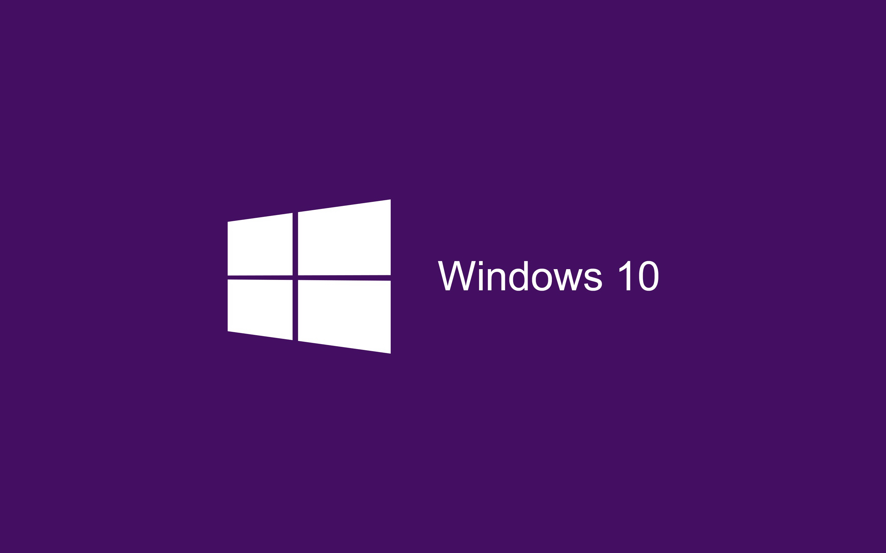 Description: A purple background with the windows 10 logo on it and the words windows 10 on it in white letters.
