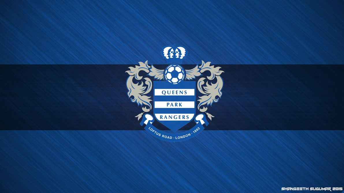 Description: A blue and white wall with a coat of arms on it and a name on it that says queens park rangers.