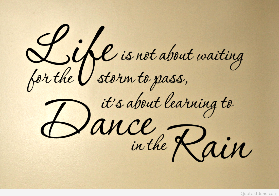Description: A picture of a quote on a wall with a quote on it that says life is not about waiting for the storm to pass.