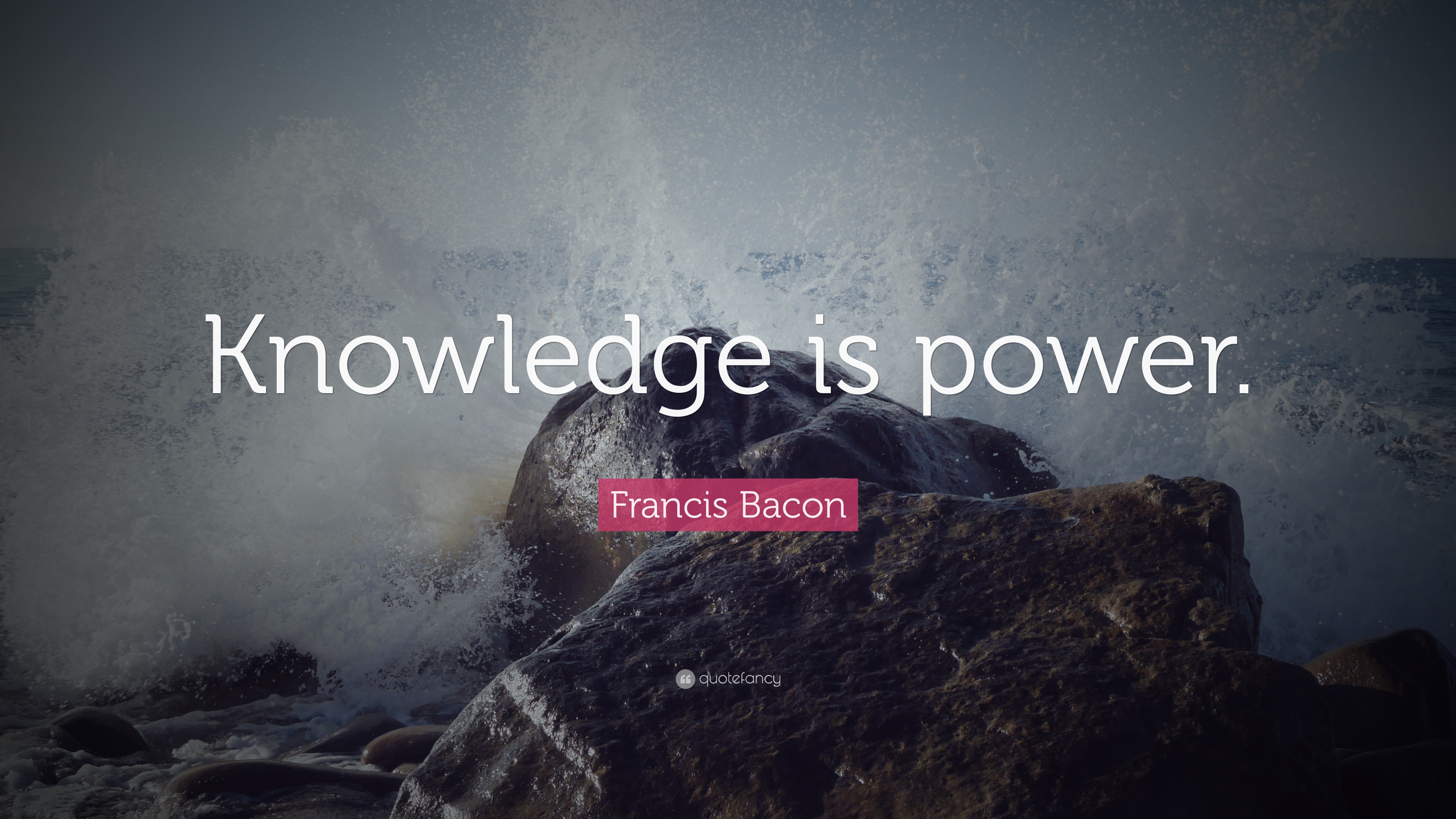 Description: A quote on a rock with a wave crashing in the background and a quote about knowledge is power on the top.