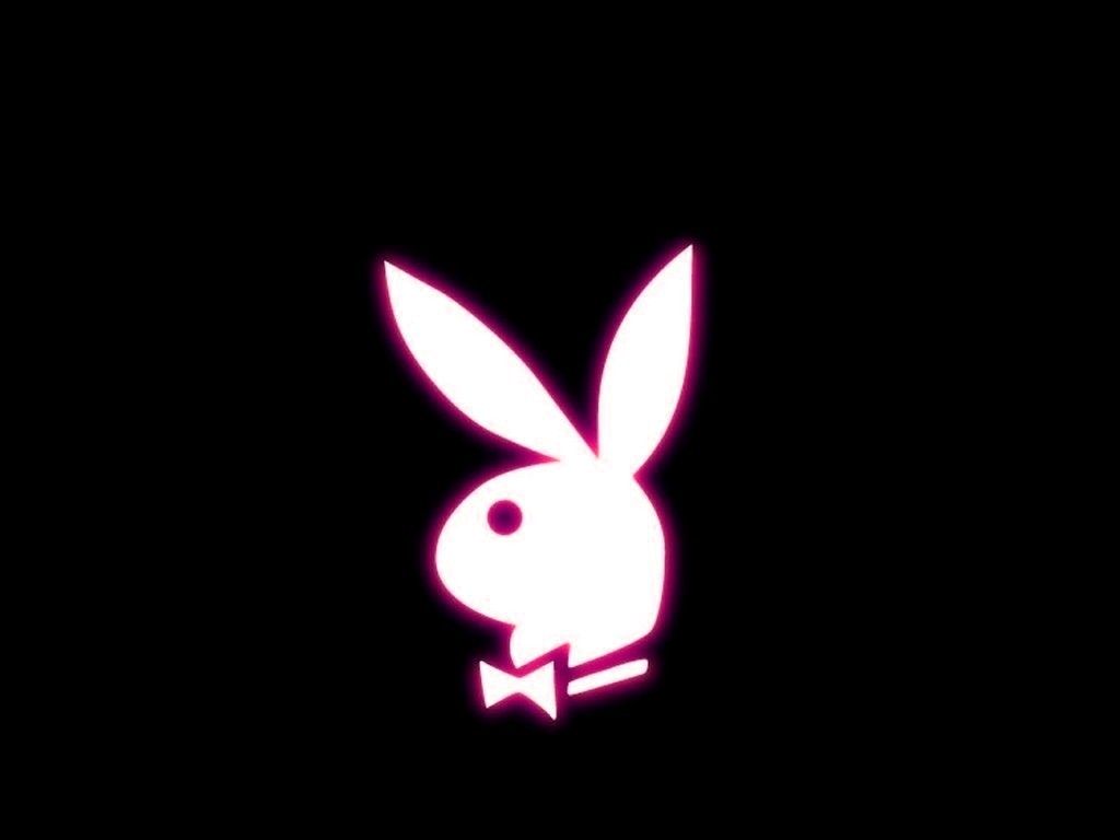Description: A rabbit with a bow tie on its head in the dark with a neon pink glow on it's face.