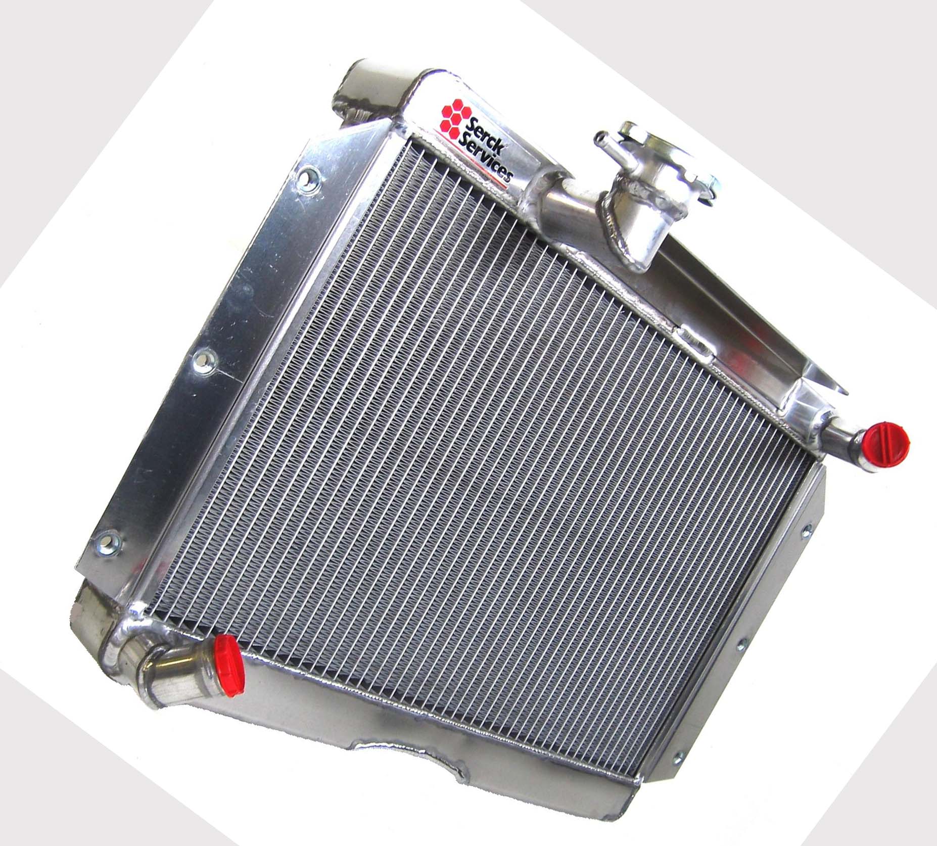 Description: A radiator is shown with a red valve on it's side and a red valve on the other side.