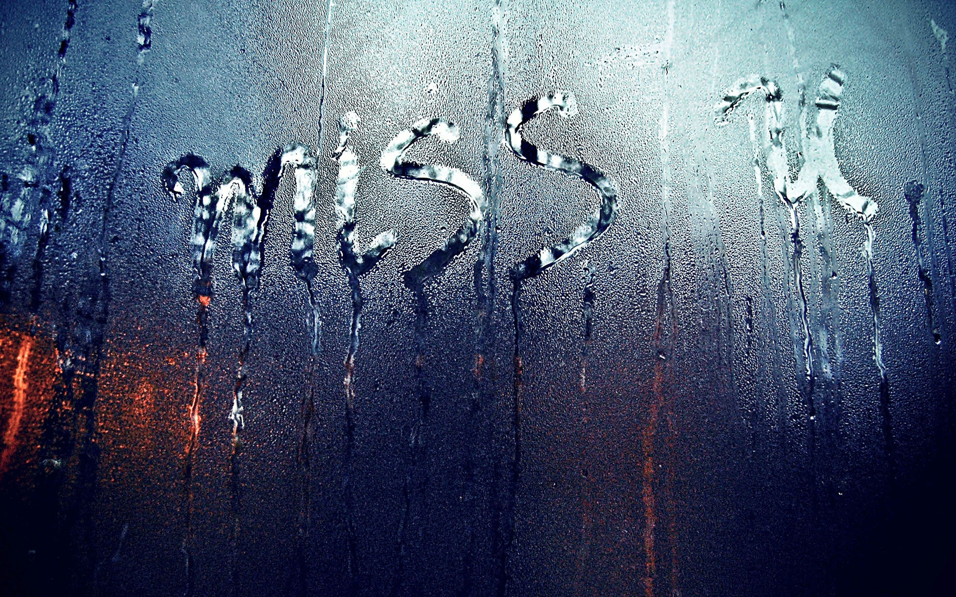Description: A rain soaked window with the word rain written on it and the word rain written on the window glass.