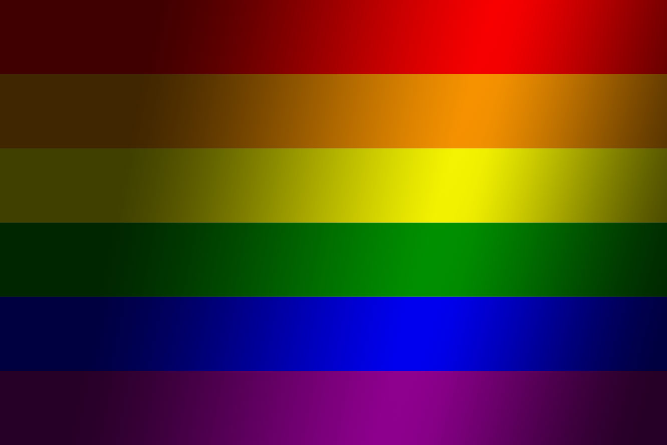 Description: A rainbow colored background with a black border and a white border on the bottom of the image.