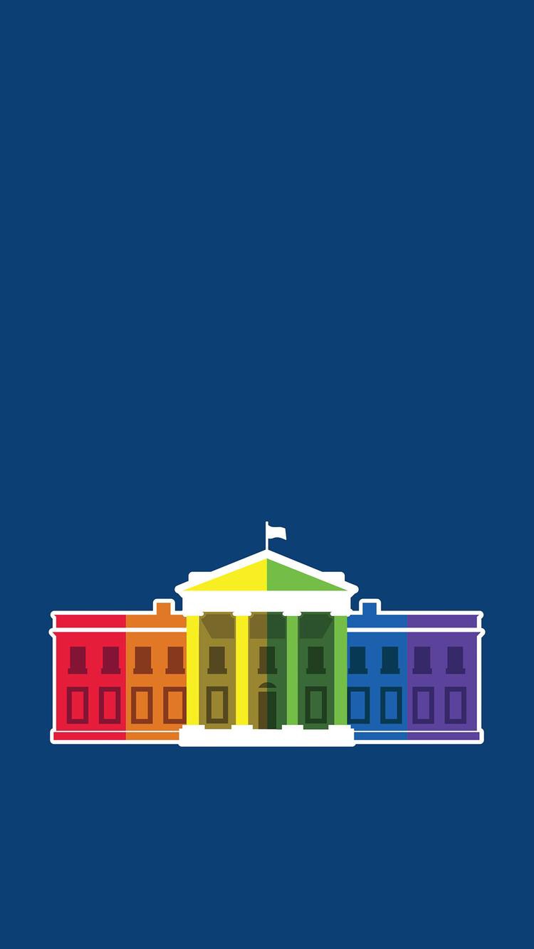 Description: A rainbow building with a blue background and a rainbow flag on top of it.