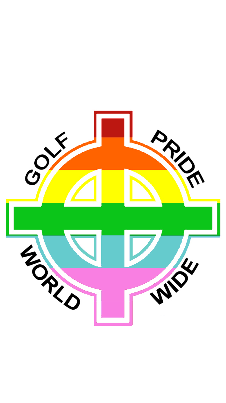 Description: A rainbow colored cross with the words gol pride world wide on it's side and a cross on the bottom.
