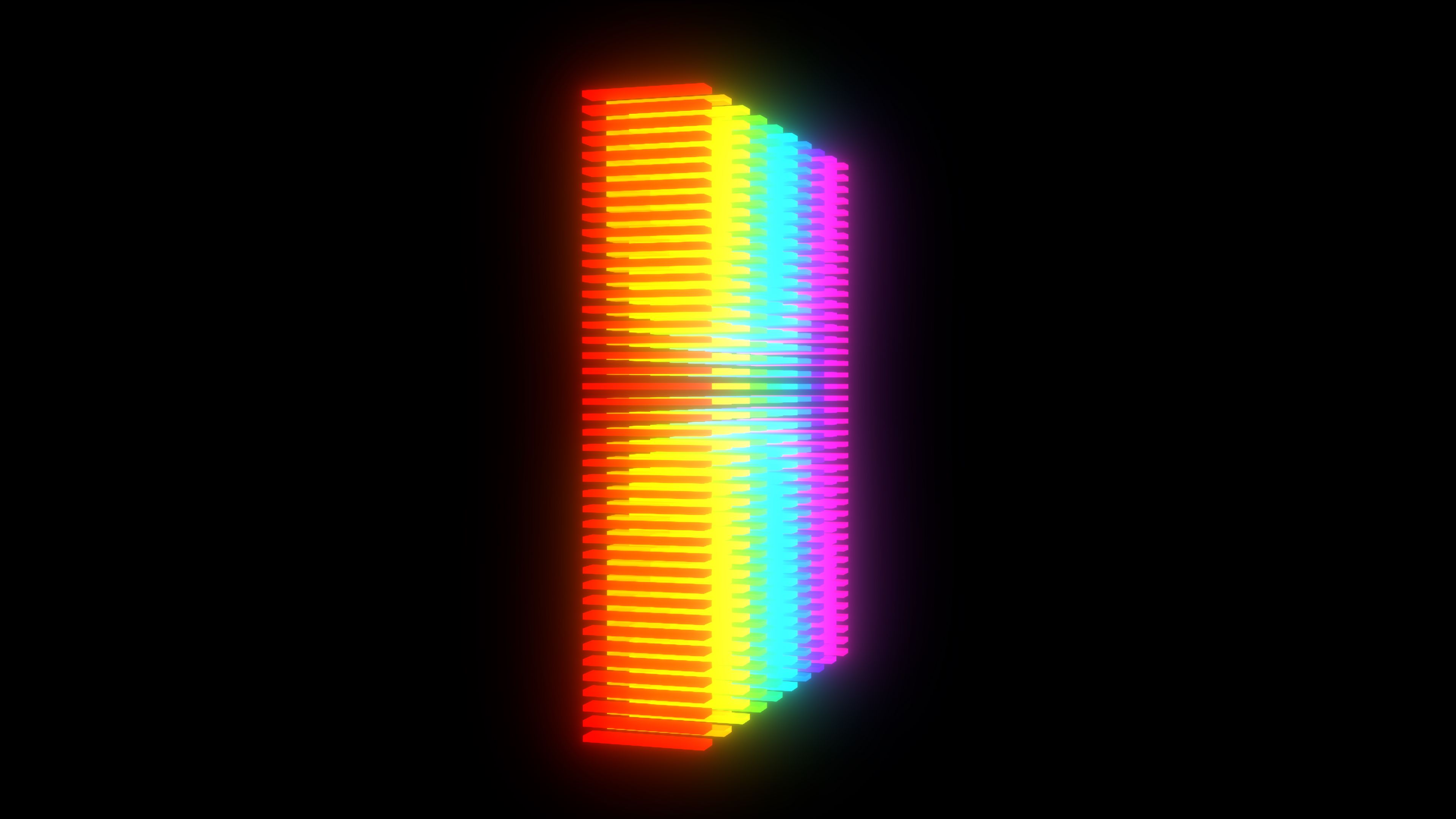Description: A rainbow colored object is shown in the dark room of a building with a black background and a black background.