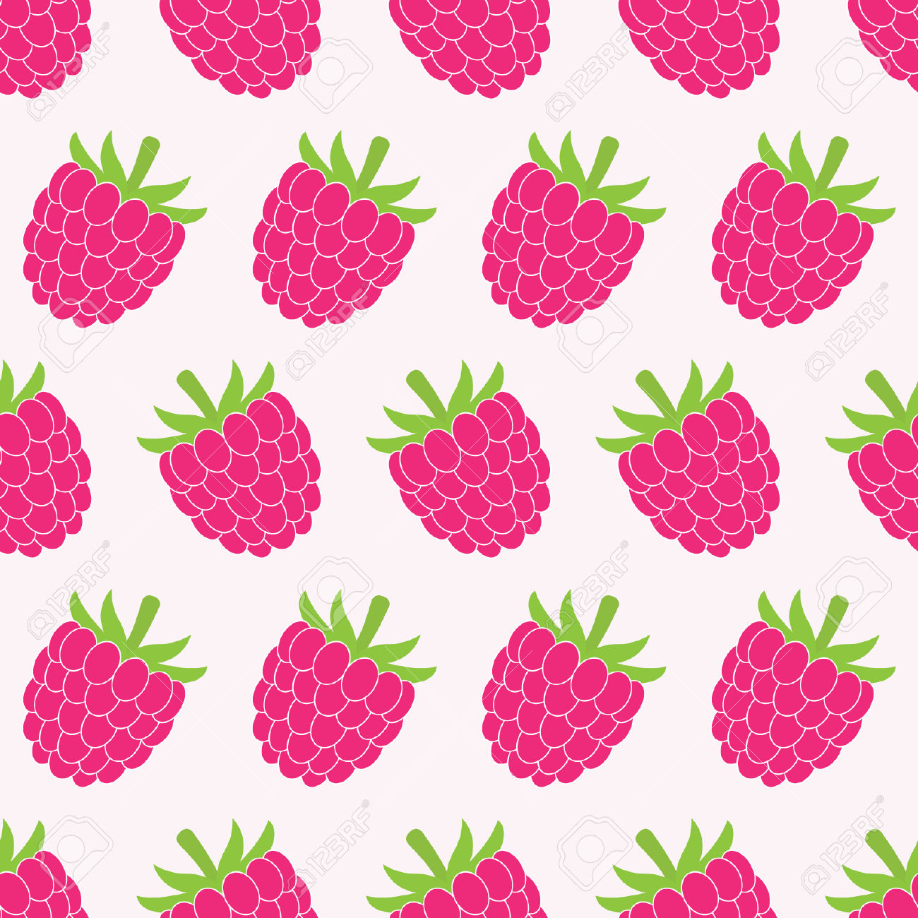 Description: A pattern of raspberries on a white background stock photo - 9599999.