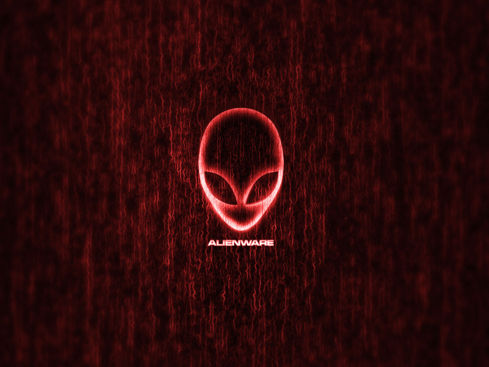 Description: A red alien face with the word alienware on it's side in the center of the image.