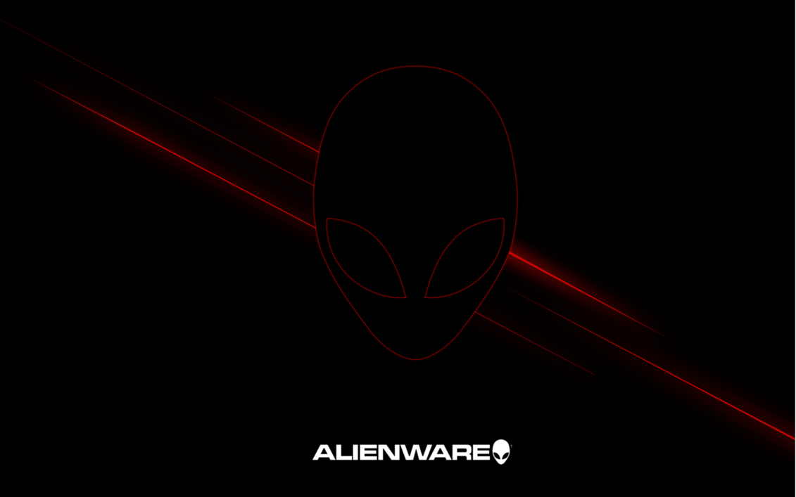 Description: A red alien head with a black background and a red line in the middle of the image that says alienware.