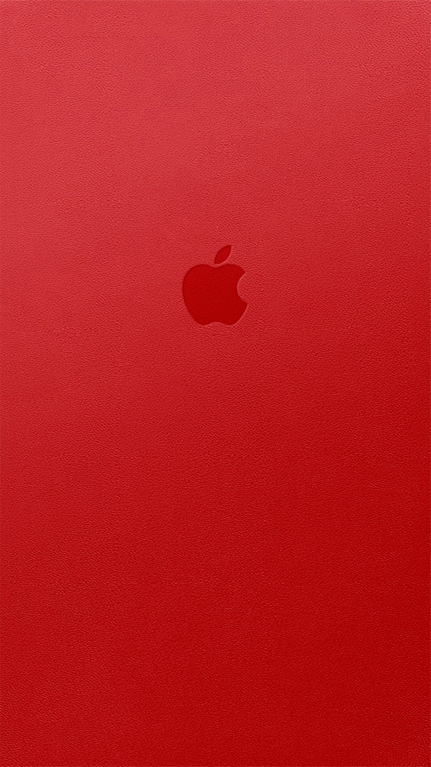 Description: A red apple laptop computer with a red background and a red apple logo on the back of the laptop.