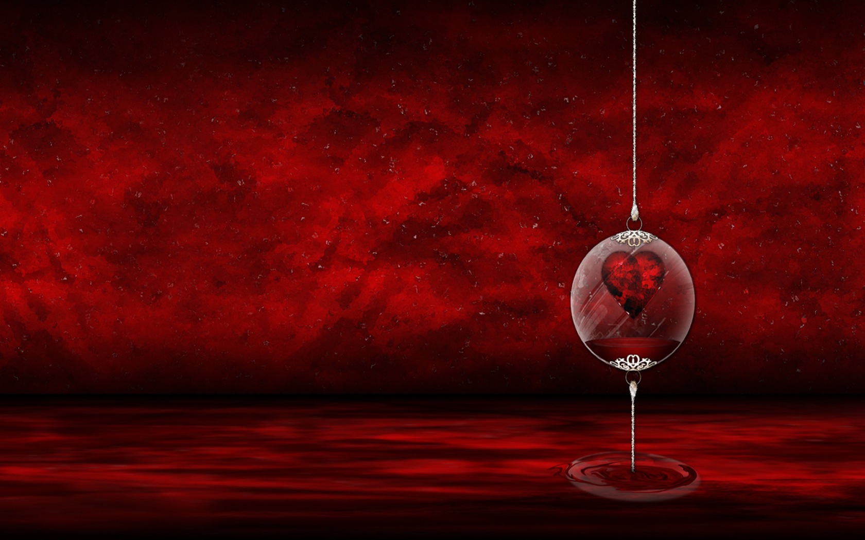 Description: A red background with a red and black background and a red and white ornament hanging from a string.
