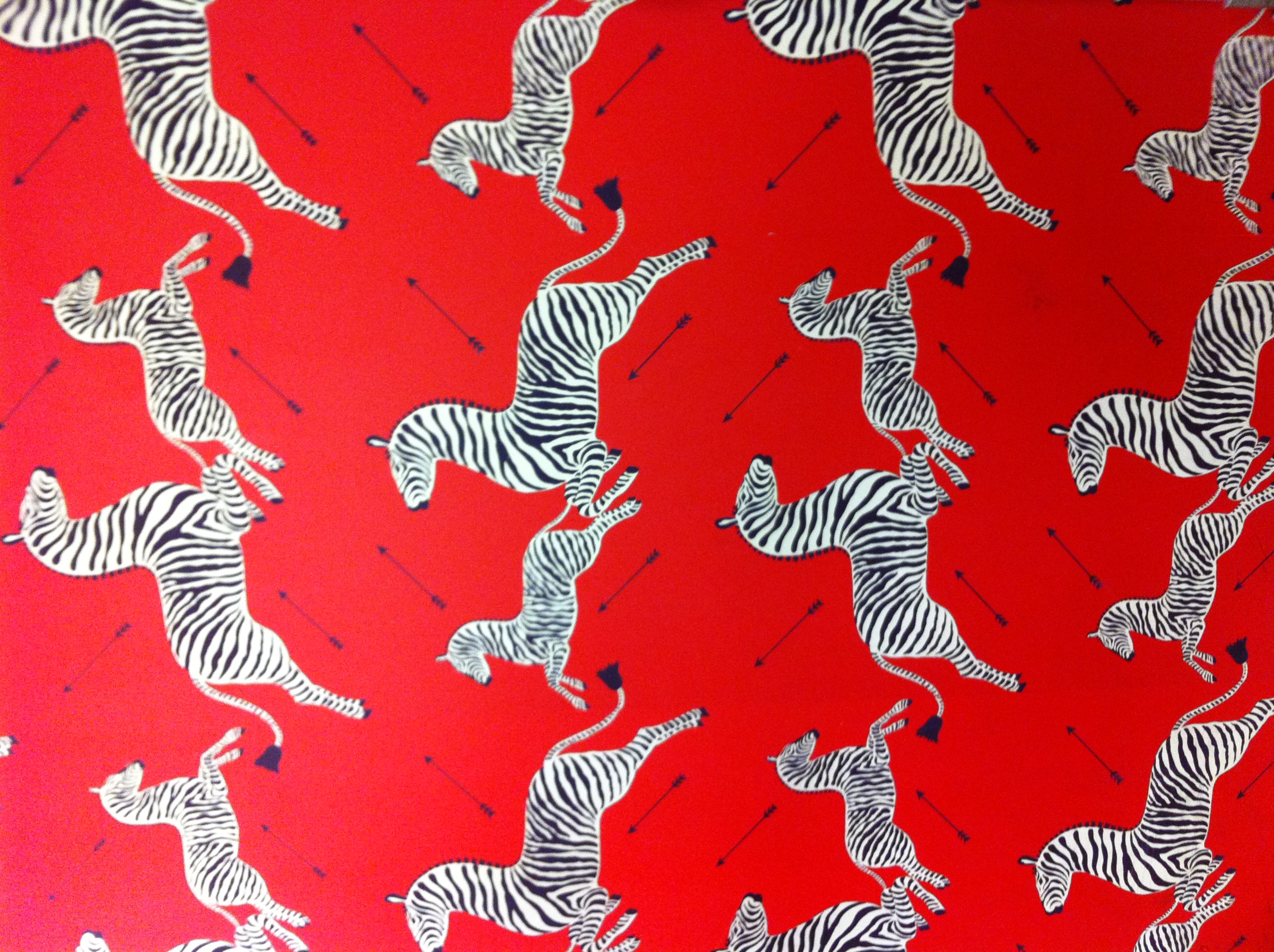 Description: A red background with a pattern of zebras on it's side and a red background with a pattern of zebras on the side.
