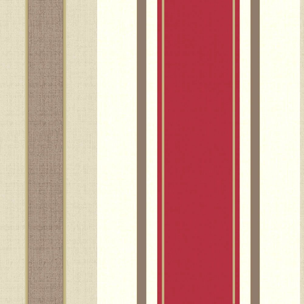Description: A red and beige striped wallpaper with a red stripe on it's side and a brown stripe on the other side.