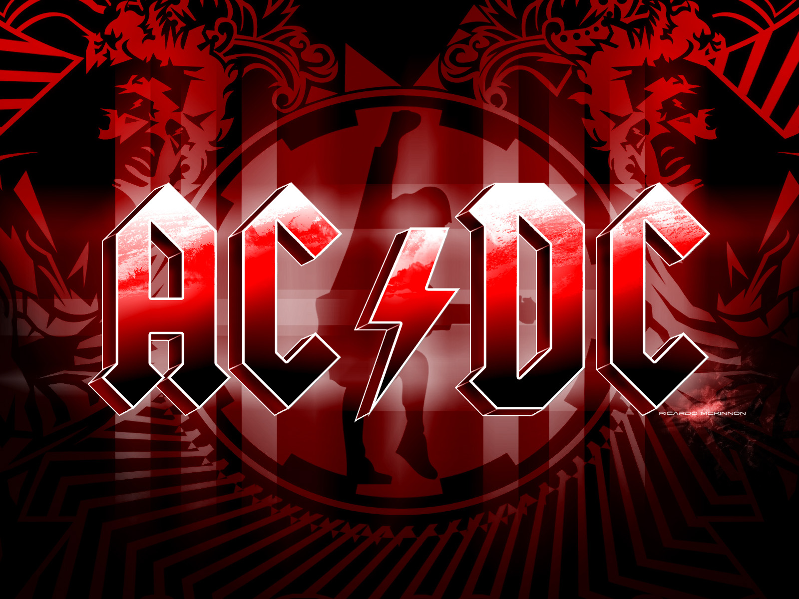 Description: A red and black background with the word ac dc in the middle of it and a red and black background with a red and white design.