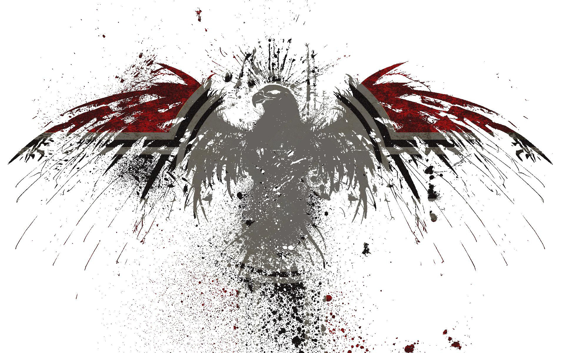Description: A bird with red wings and black wings on it's back legs and wings spread out.