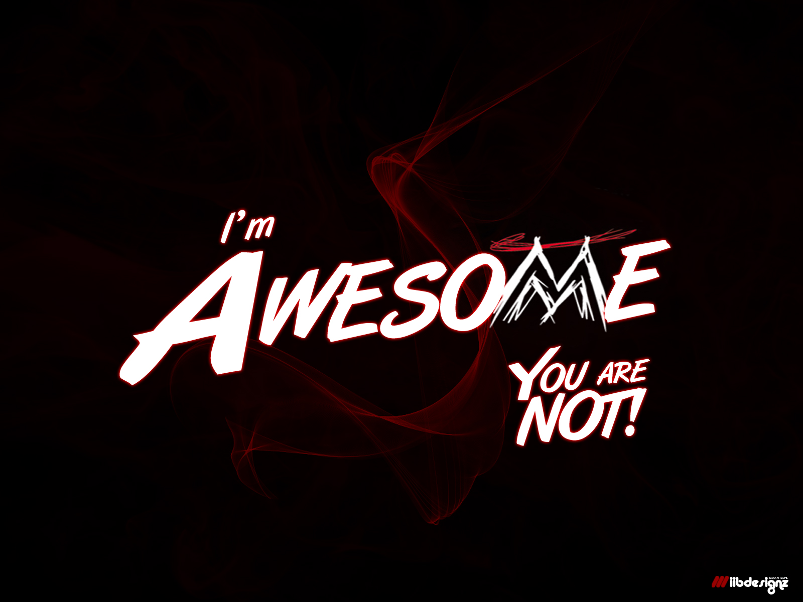 Description: A red and black background with a neon text that says i'm awesome you are not on it.