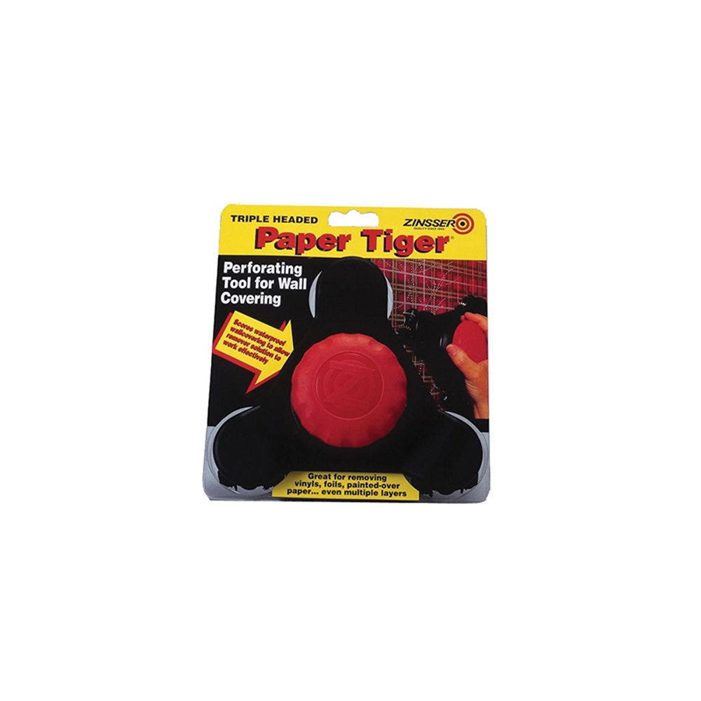 Description: A red and black paper tiger toy in a package on a white background with a red and black tag.