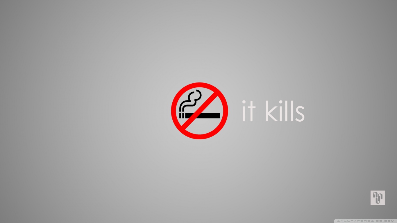 Description: A red and black sign that says it kills on a gray background with a cigarette in the middle of the sign.